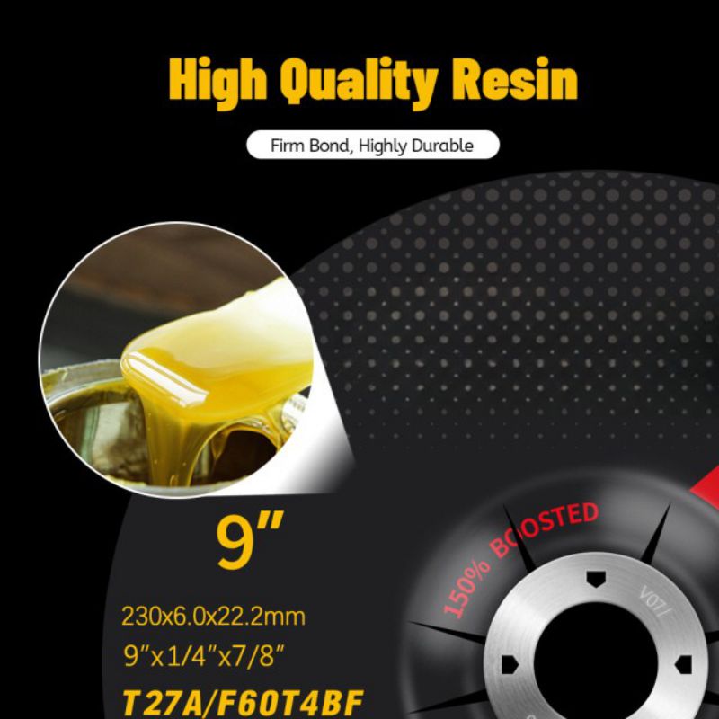 - Formuła ścierna: Podłoże z tlenku glinu połączone ze spoiwem żywicznym, odpowiednie do pracy szlifierek kątowych przy dużych prędkościach