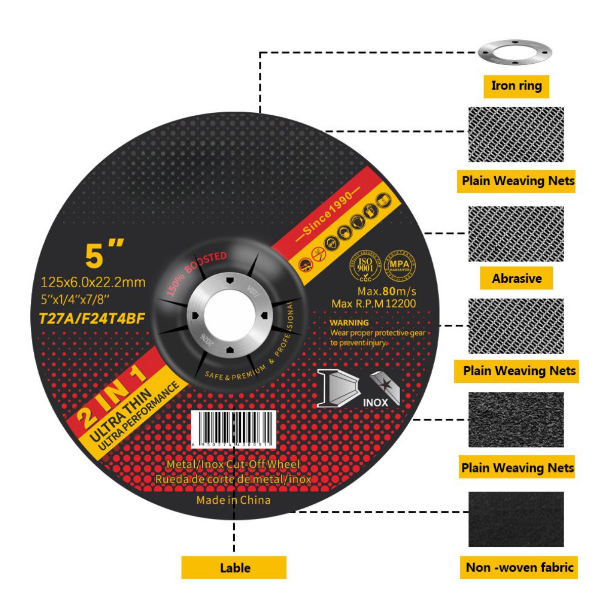Ta 5-calowa tarcza szlifierska jest używana głównie do wstępnej obróbki stali, szlifowania spoin i przycinania krawędzi elementów. Nadaje się do obróbki podłoży metalowych w stoczniach, wyrównywania powierzchni elementów konstrukcyjnych budynków oraz szybkiego usuwania zadziorów w warsztatach obróbki mechanicznej. Jej parametry 125×6,0×22,2 mm (T27) są kompatybilne z urządzeniami popularnych marek i mogą być stosowane jako alternatywa dla tarcz szlifierskich Norton lub podobnych produktów firmy Klingspor.